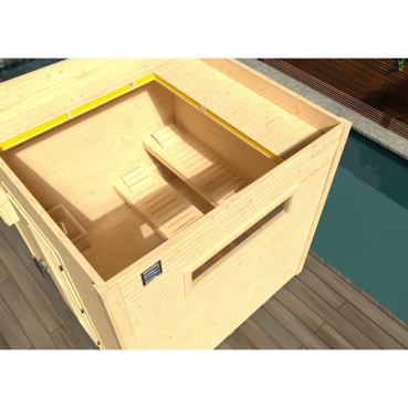 2 verschiedene Technikpakete inkl. 9 kW Ofen (mit oder ohne Dampfbadfunktion) wählbar.