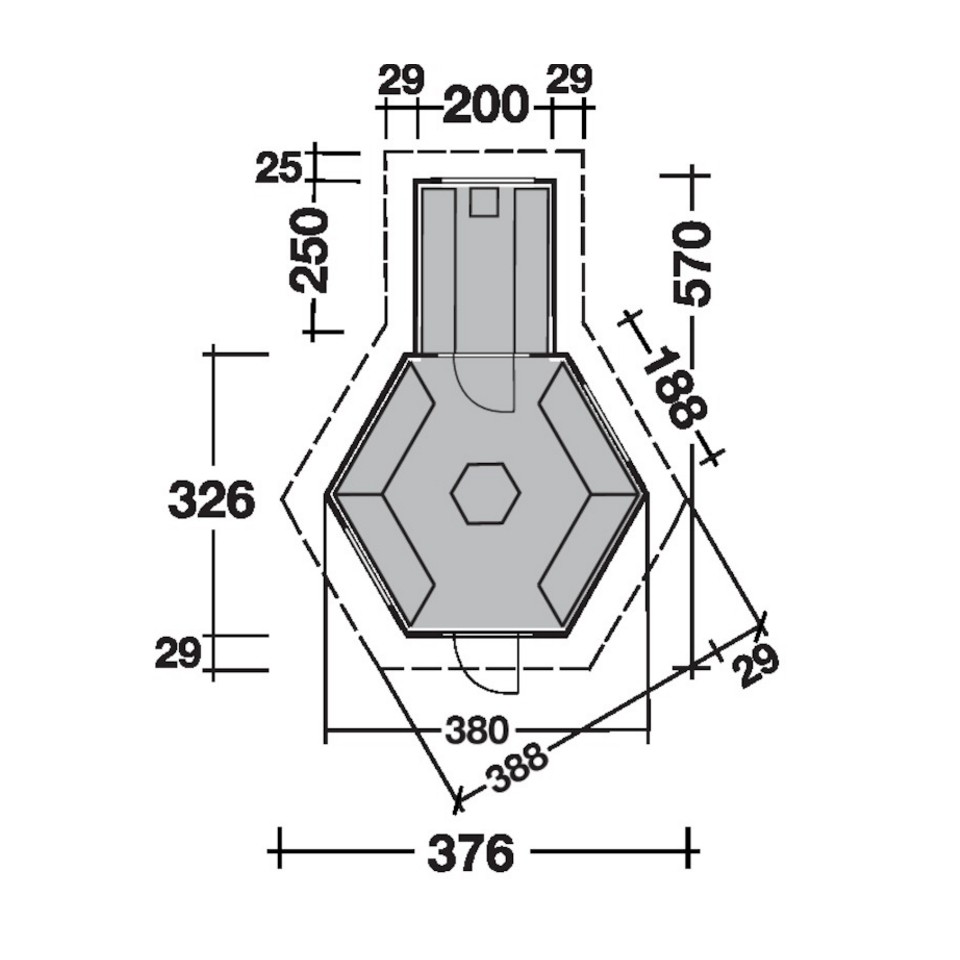 1 x Dreieckfenster feststehend 974 x 487 mm |