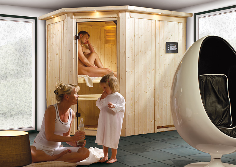 Unsere Sauna Saja mit einer Wandstärke von 68mm ist in naturbelassenem Fichtenholz erhältlich. Die Elementbauweise ermöglicht einen einfachen und schnellen Aufbau. Hochwertige, vorgefertigte Wand- und Deckenelemente garantieren eine problemlose Montage. Die Fronten bestehen innen aus einer stabilen Rahmenkonstruktion mit 42 mm Mineralwolldämmung. Die Außen- und Innenseiten der Fronten sind mit 12,5 mm Spezial-Softline-Fichte-Profilholz verkleidet. Die Rückwände haben eine Stärke von 57mm und bestehen aus einer stabilen Rahmenkonstruktion mit 42 mm Mineralwolldämmung. Die Außenseite ist zusätzlich mit einer Hartfaserplatte verstärkt.