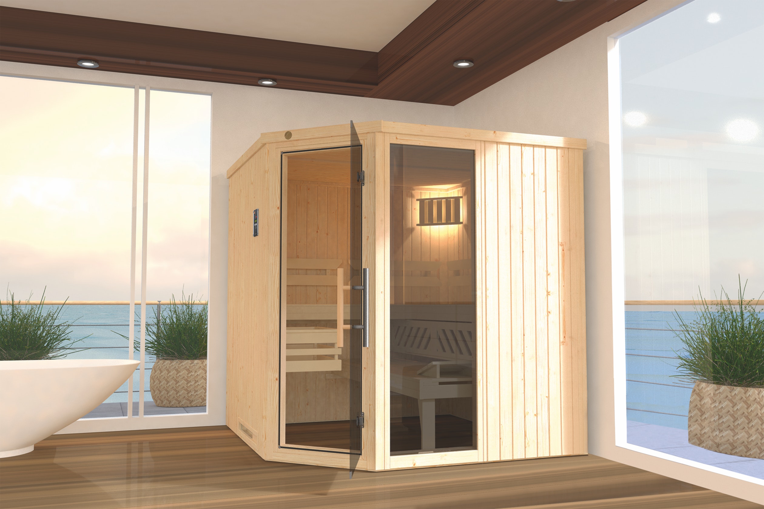 Weka Elementsauna Varberg 3 mit platzsparendem Eckeinstieg macht