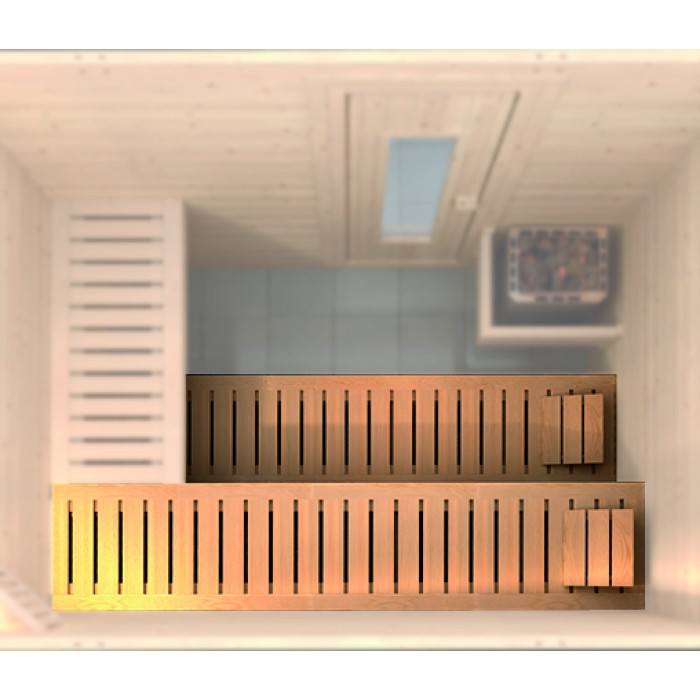 stabiles, extra glattes Spezialholz - in 2 Größen erhältlich : Größe 1 : L 178,5 x T 55 cm, für Sauanbreite ab 194 cm Größe 2 : L 228,5 x T 55 cm, für Saunabreite ab 244 cm