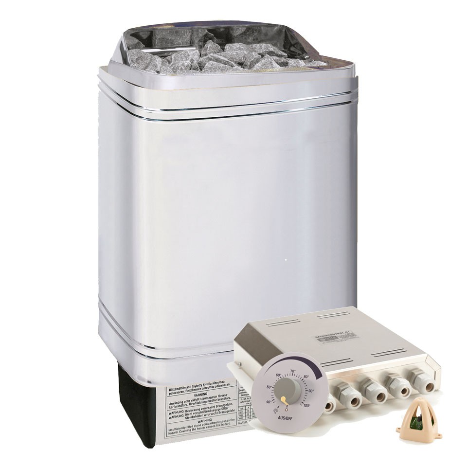 Innenmantel verzinkt, Steinauflage verzinkt, rostfreie Heizstäbe, inkl. 20 kg Saunasteine.