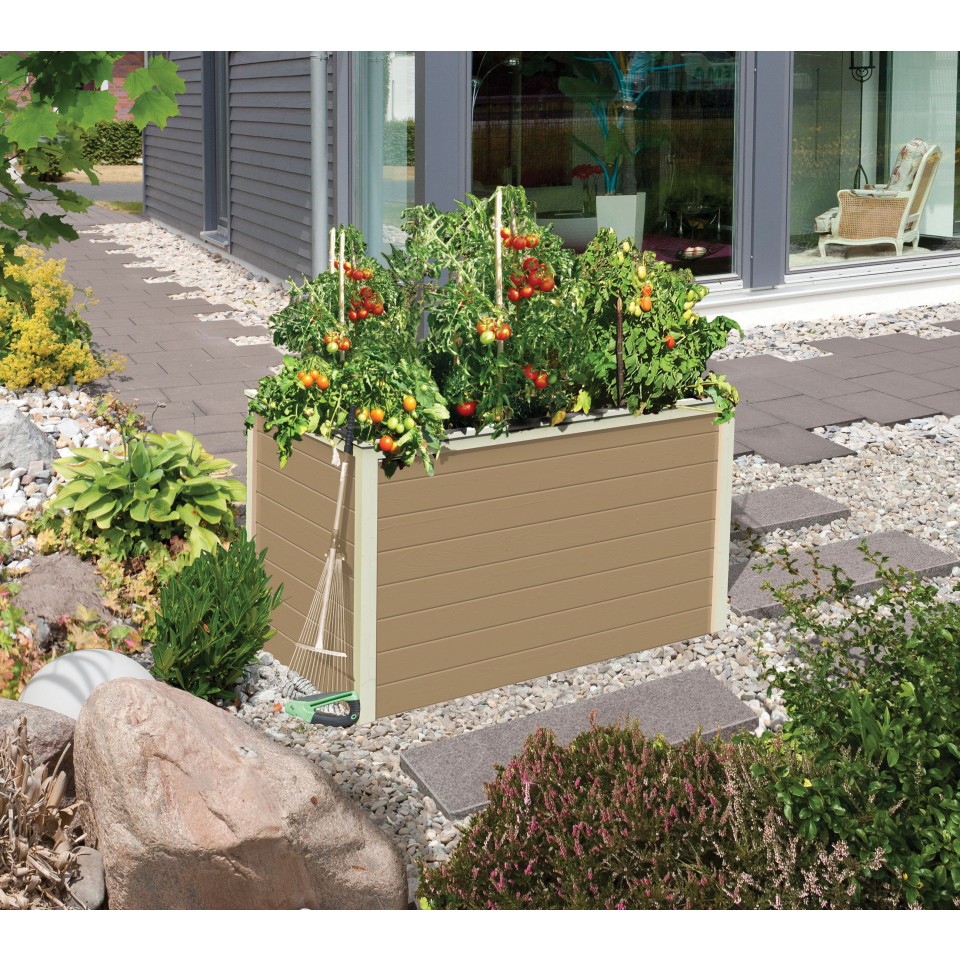 Karibu Hochbeet 0 kommt inkl. feuchtigkeitshemmender Kunststofffolie. 260 l Fassungsvermögen, Steck-Schraubsystem.