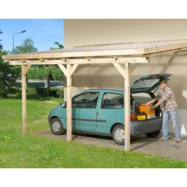 Der praktische Weka Anlehn-Carport mit hochwertigem Klarsicht-Kunststoffdach ist ideal geeignet zum platzsparenden Anbau an Ihr Wohnhaus