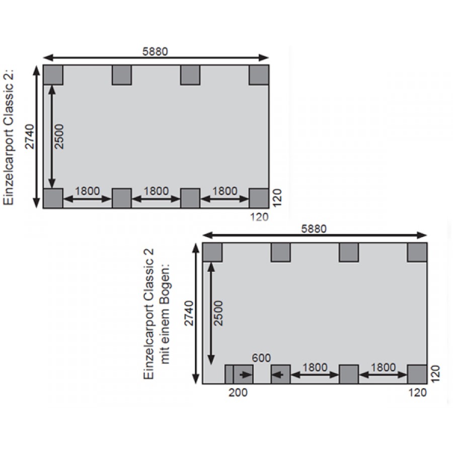 Sie erhalten den Carport mit 2 Rundbögen oder alternativ dazu nur mit einem Rundbogen