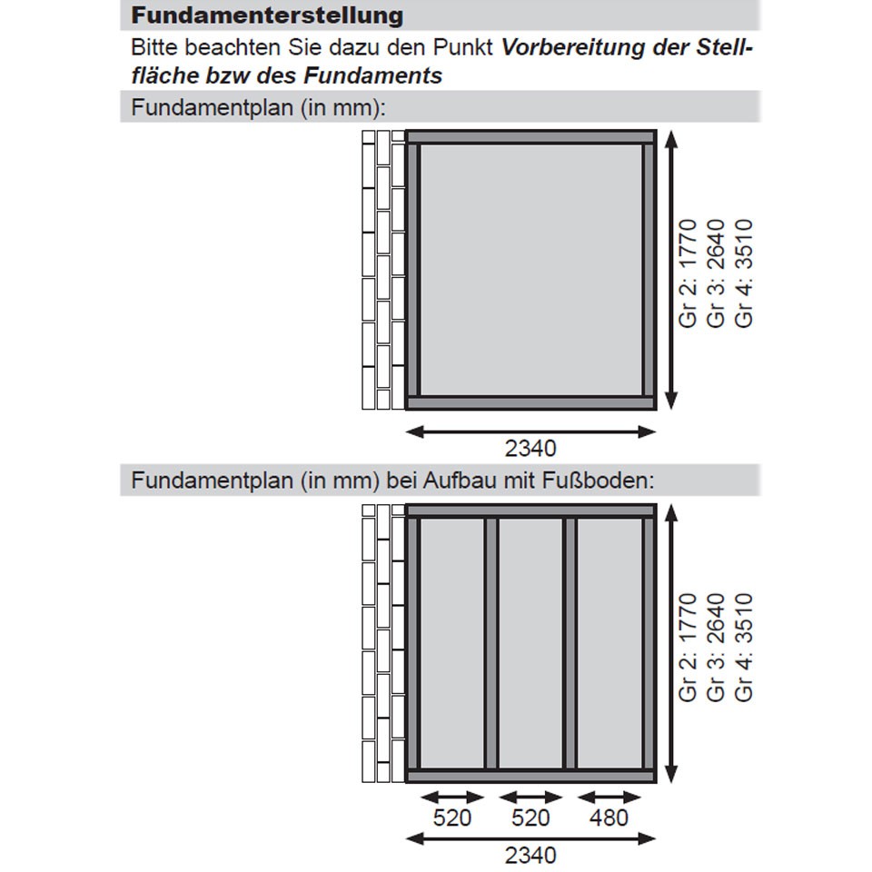 Grundflächen: 238 x 181 cm, 238 x 268 cm, 238 x 355 cm