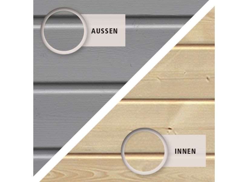 | Technische Details zum 19 mm Karibu Gartenhaus Qubic 1 in seidengrau: |
