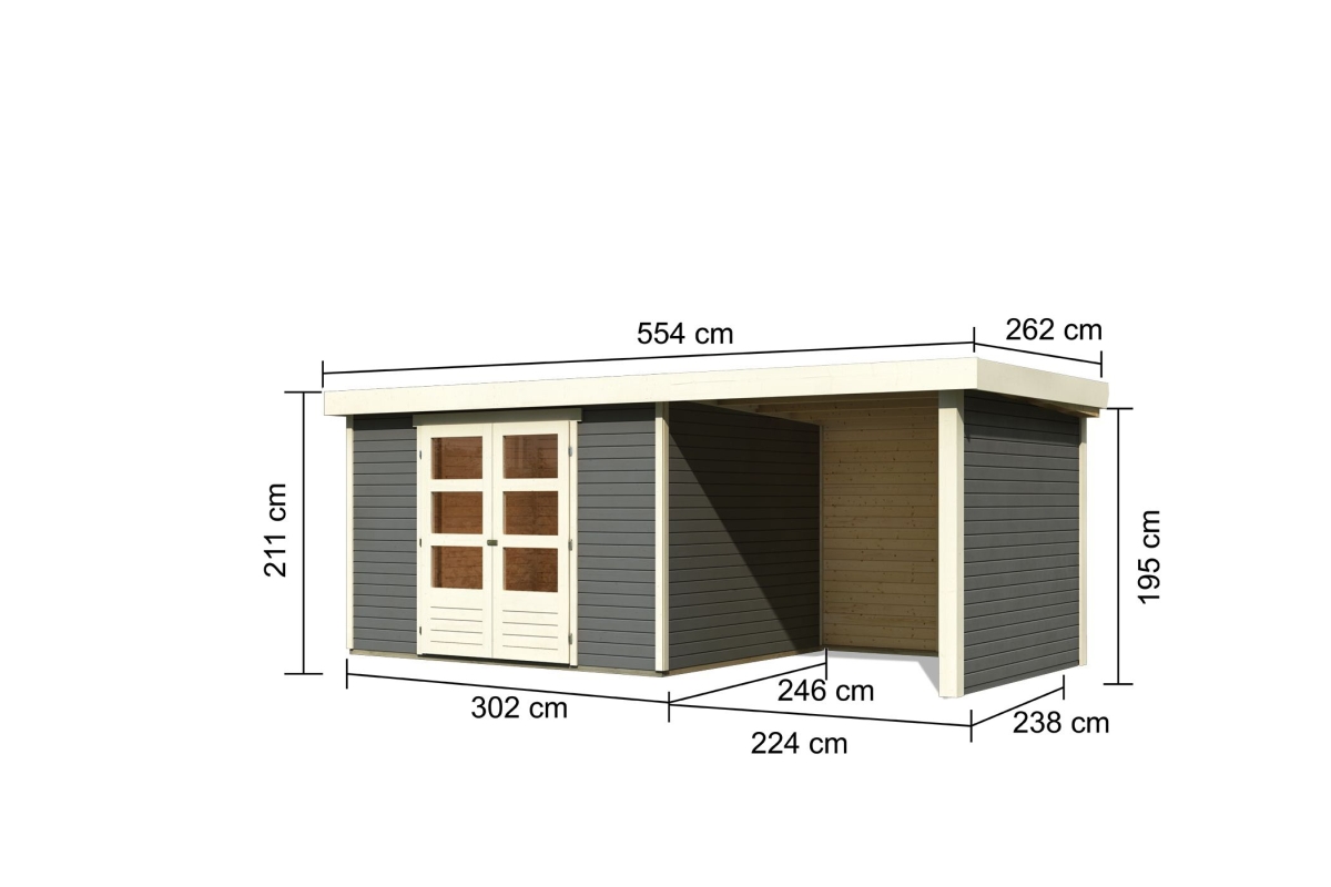 Mobile Preview: Woodfeeling Gartenhaus Askola 5 m. 240 cm Schleppdach/Seiten- und Rückwand