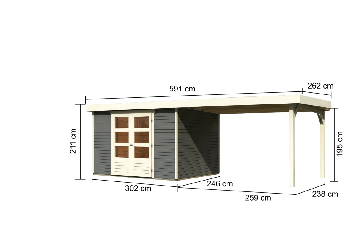 Mobile Preview: Woodfeeling Gartenhaus Askola 5 mit 280 cm Schleppdach