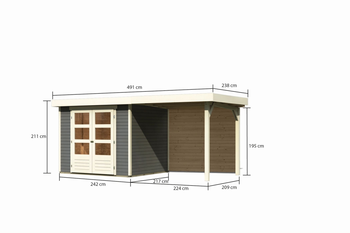 Gartenhaus Askola 3 mit 240 Anbaudach + Rückwand