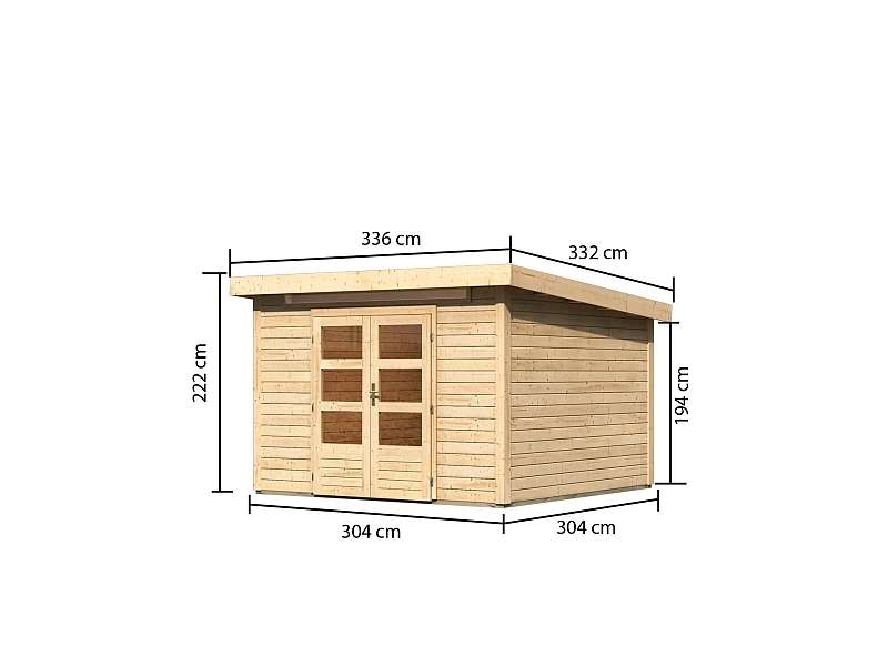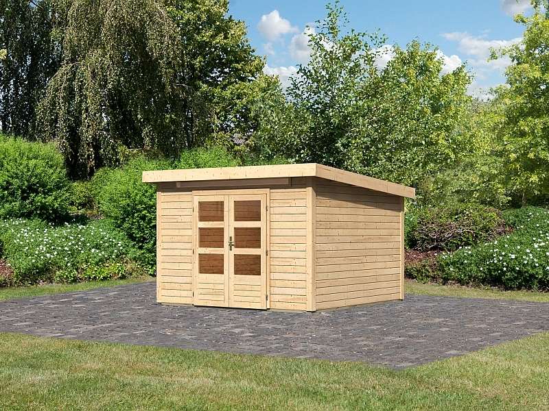 Karibu Woodfeeling Gartenhaus Kerpen 6 - attraktives Pultdach Gartenhaus mit Oberlicht und Doppelflügeltür. |