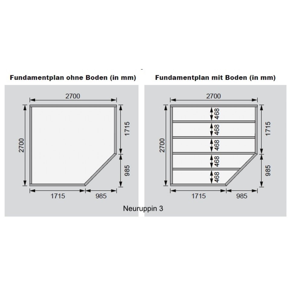 Grundfläche: 244 x 244 cm (Neuruppin 2), 274 x 274 cm (Neuruppin 3),