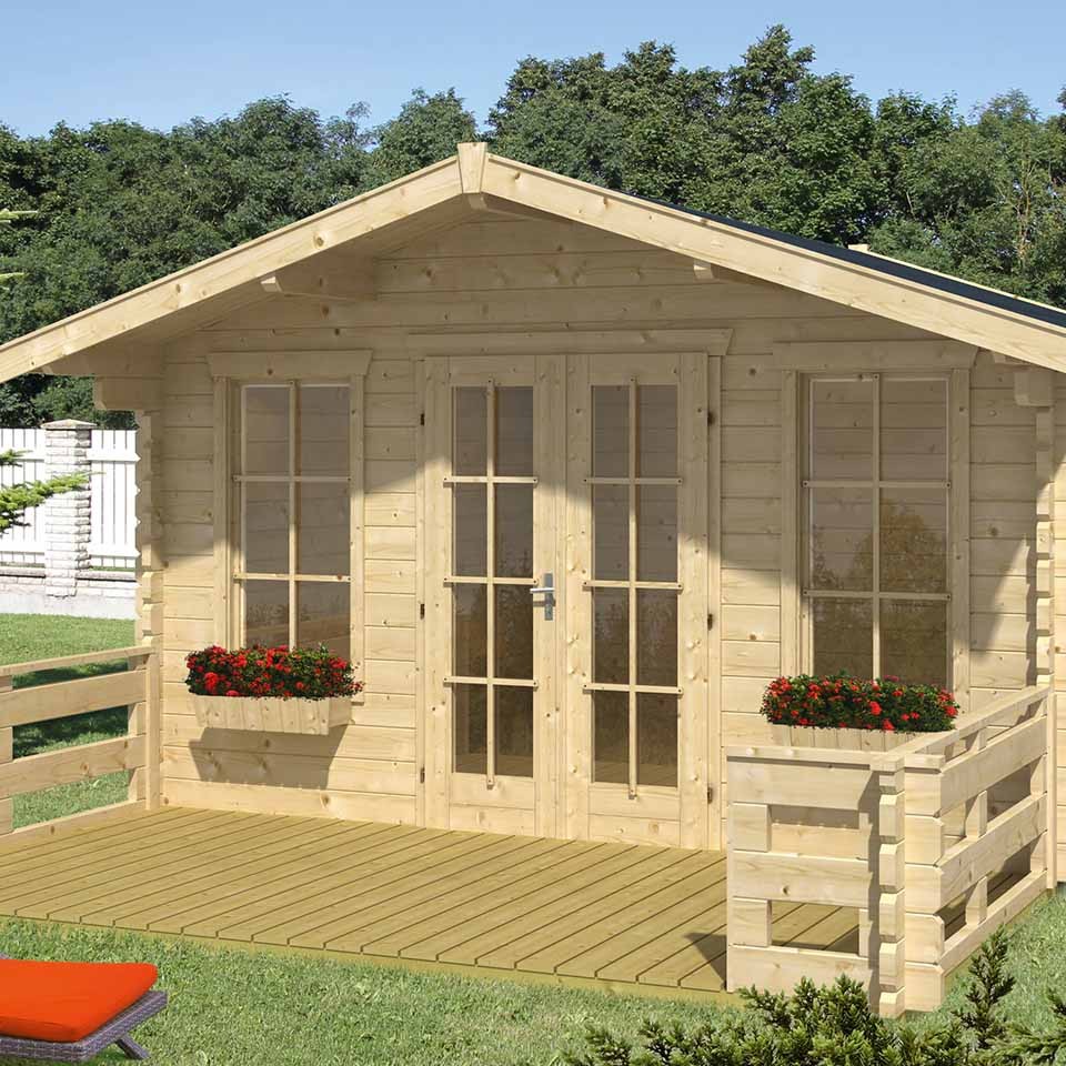TRONDHEIM 45 mm Blockbohlen Satteldachhaus, mit 80 cm Vordach