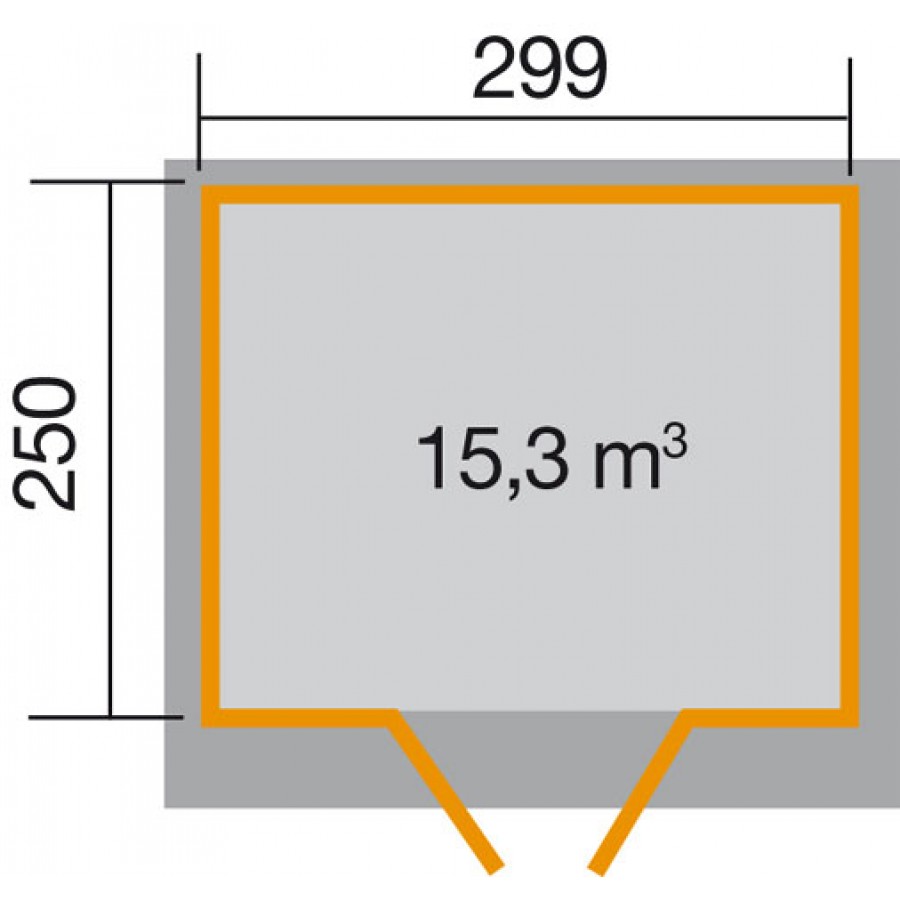 - Grundflächen (Breite x Tiefe) 399 x 250 cm (Größe 4)