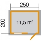 - Grundfläche (Breite x Tiefe) 250 x 200 cm (Größe 1