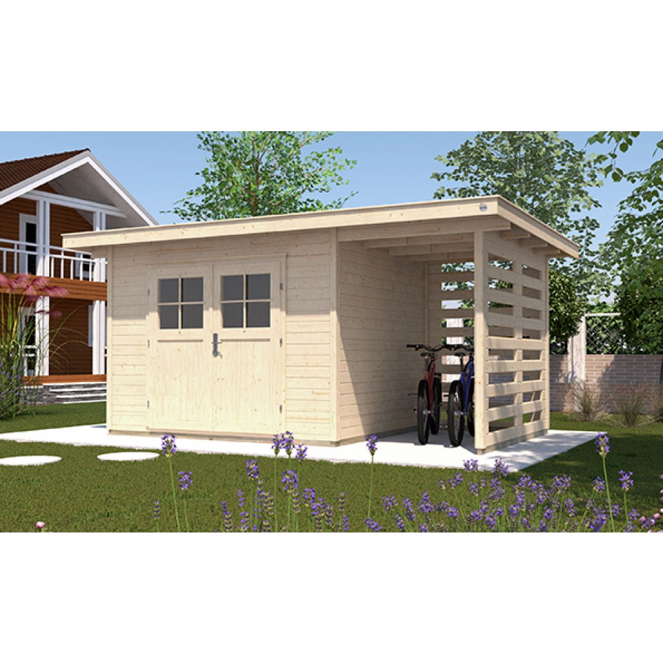 16 mm starkes Massivholz-Flachdach inkl. Bitumen-Dachbelag zur Ersteindeckung |