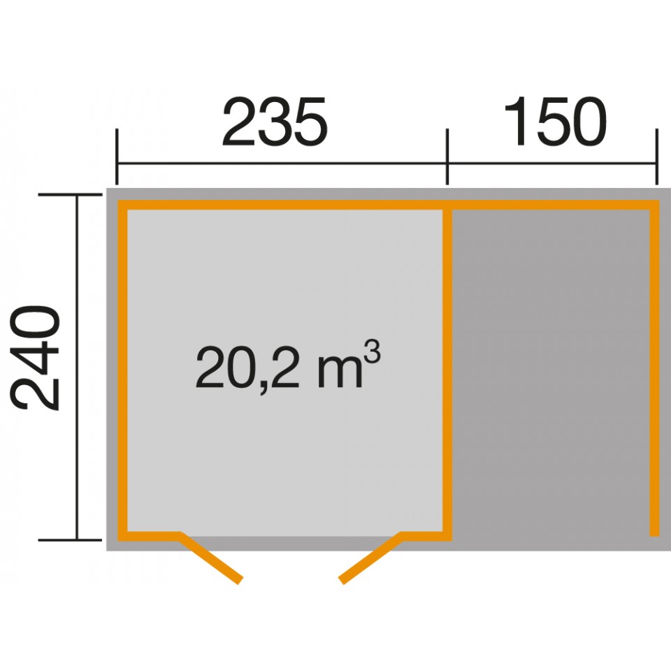 Grundflächen (inkl. Anbau): 385 x 240 cm (Gr. 2), 445 x 240 cm (Gr. 2)