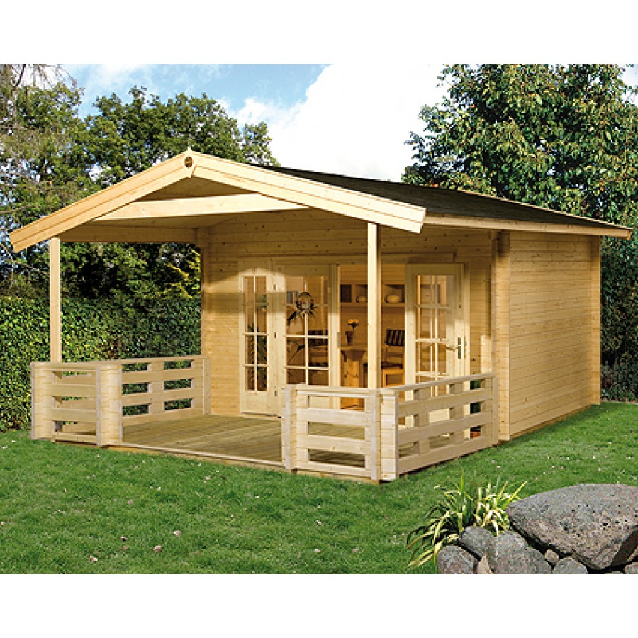 Exklusives Weka 45 mm Blockbohlenhaus in Premium-Qualität mit attraktivem Vordach und Terrasse sowie hochwertiger Fensterfront