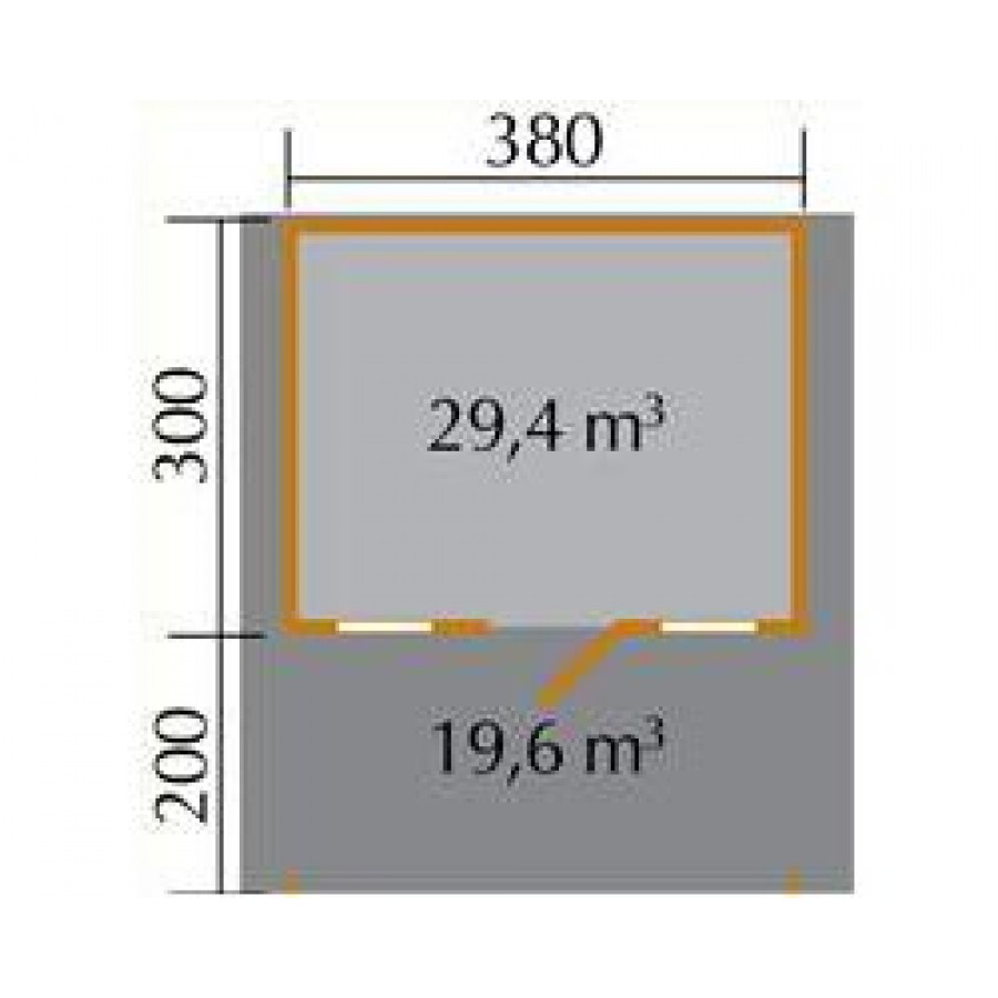- Grundfläche (Breite x Tiefe) 380 x 300 cm (Größe 1)