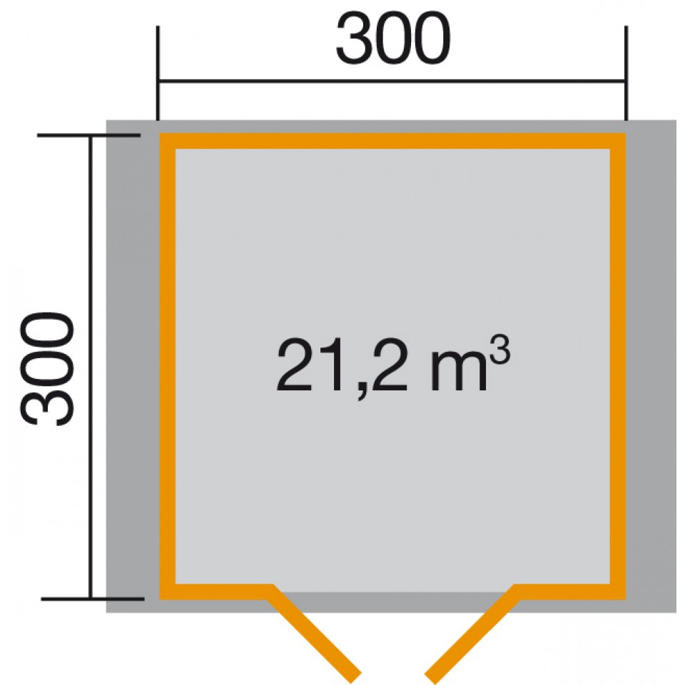 Grundflächen: 250 x 250 cm (Gr. 1), 300 x 250 cm (Gr. 2), 300 x 300 cm (Gr. 3)