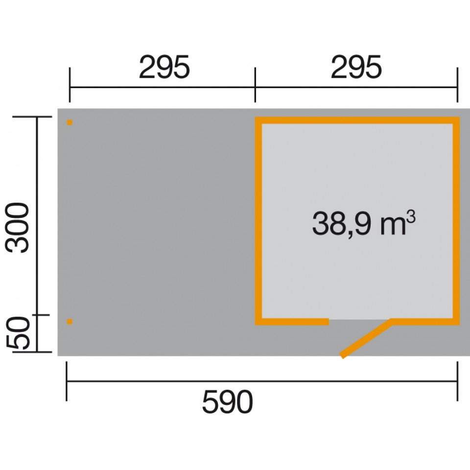 - Schleppdach und Anbauschrank (zusätzlicher Platz für Ihre Gartengeräte)