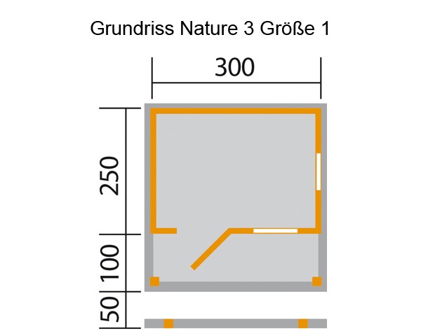 Grundfläche ohne Vordach/Sitzgelegenheit