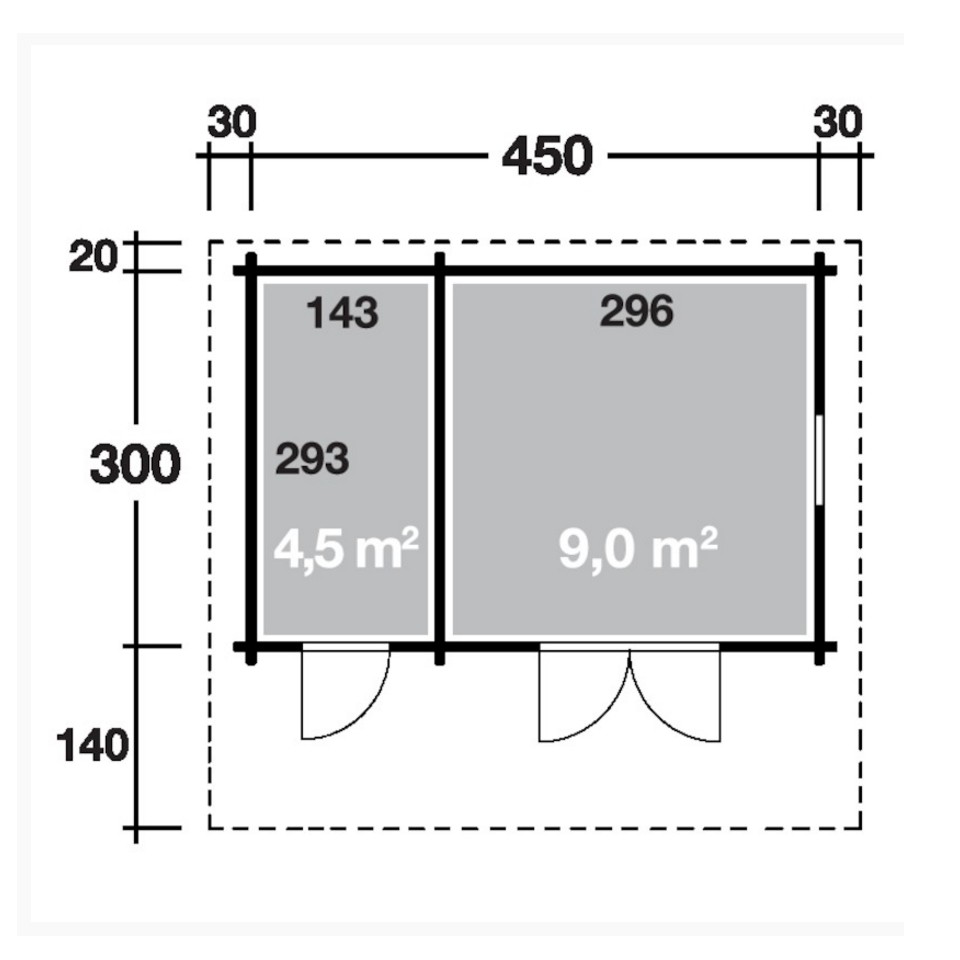 Außenmaße: 470 x 320 cm Wandstärke: 34 mm
