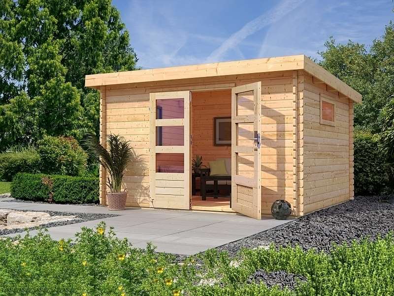 Karibu Woodfeeling Gartenhaus Trittau 4 - geräumiges Pultdach Gartenhaus mit Doppeltüre,