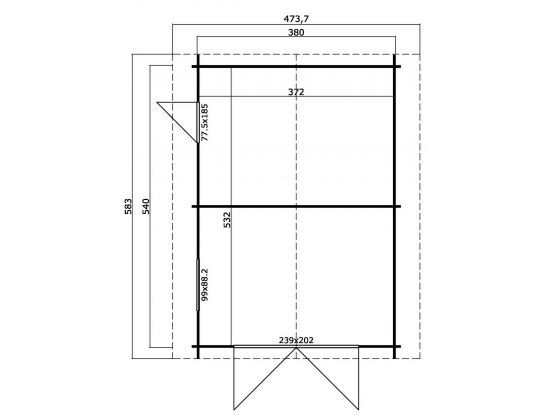 - Außenmaß: 470 x 580 cm (überdachte Fläche)