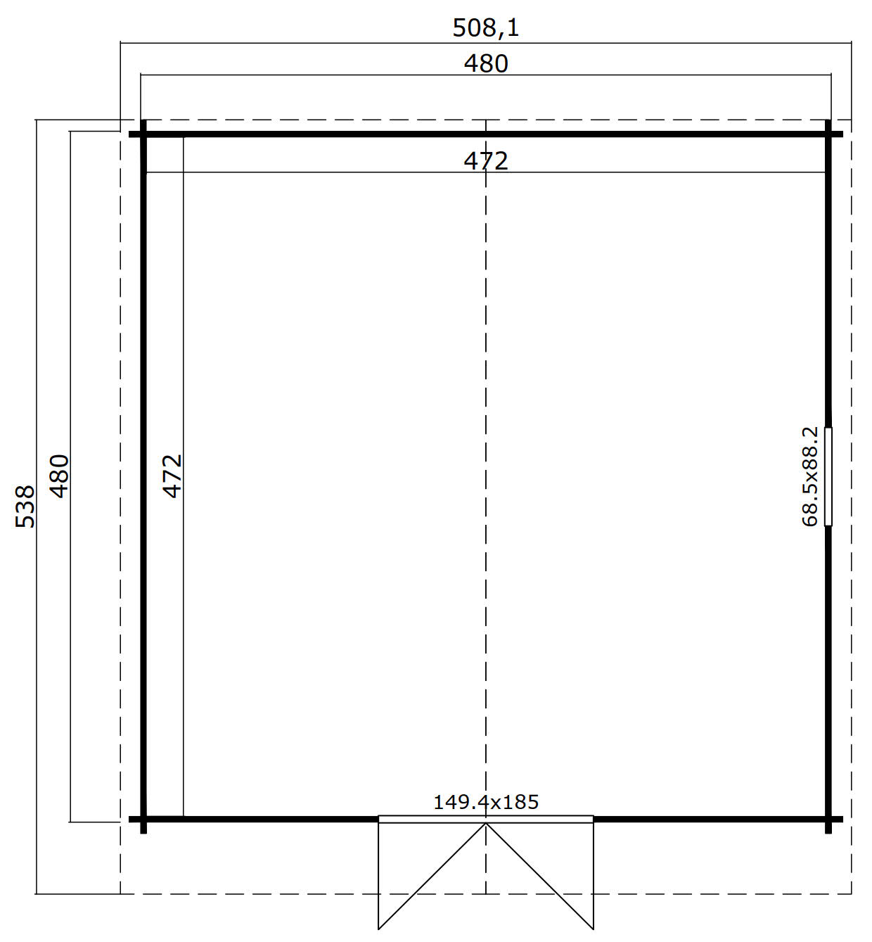 - Gesamtaußenmaß Breite: 508 cm