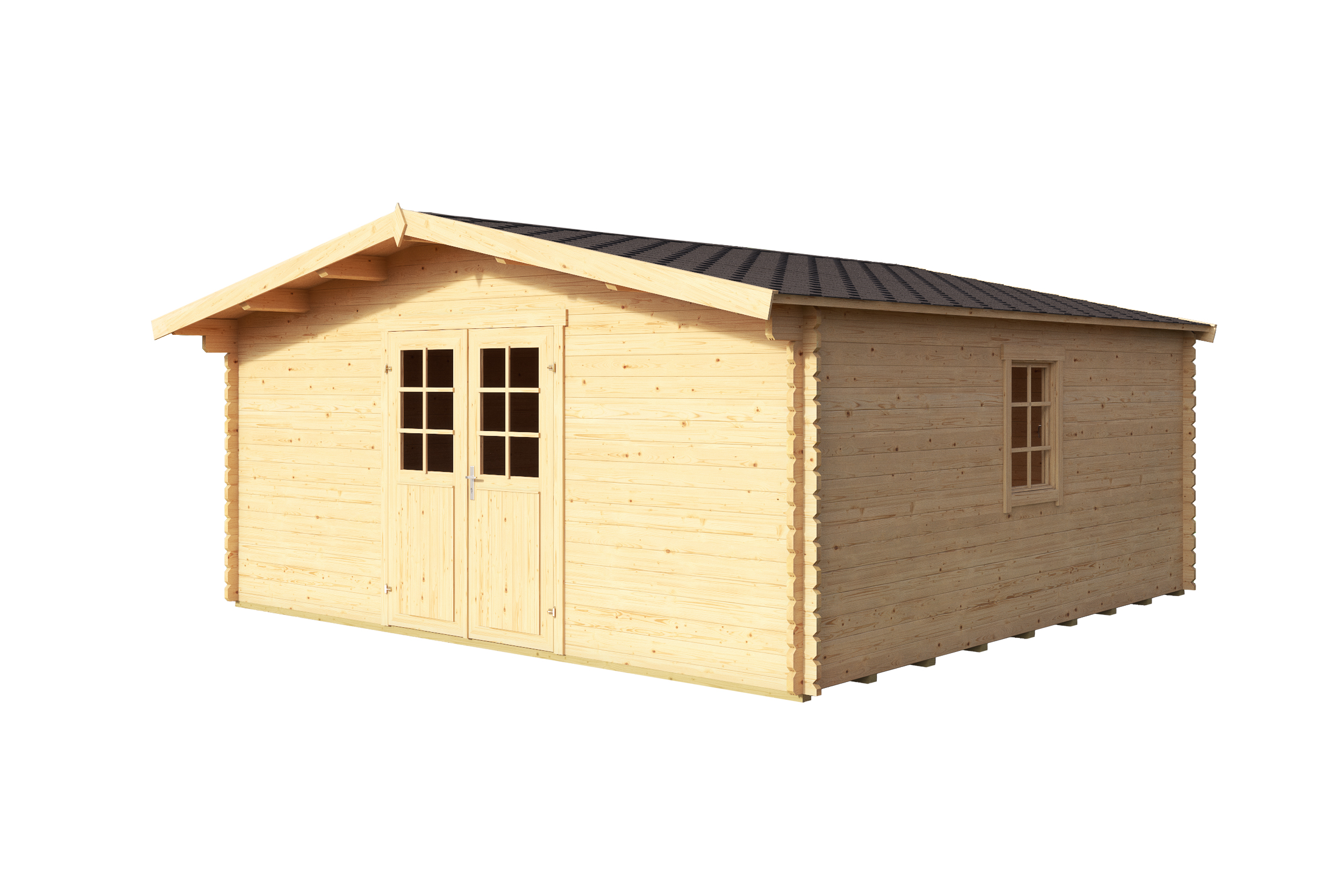 Strahlende Sonne, ein laues Lüftchen, und dann ganz nah bei der Natur: Ein Haus im Grünen ist ein Traum! Das Gartenhaus Erna 2 lädt ein zum Wohlfühlen und Entspannen. Das Blockbohlenhaus aus naturbelassenem Fichtenholz bietet mit einer Grundfläche von 22,3m² reichlich Platz, um sich gemütlich einzurichten. Die hübschen Kassettenfenster in der Doppeltür und ein weiteres Kassettenfenster an der Seite sorgen für viel Licht im Inneren des niedlichen Gartenhauses und einen ungehinderten Blick ins Grüne.