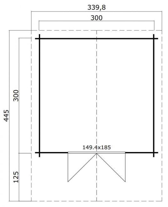 - Wandaussenmaß (BxT) 300 x 300 cm