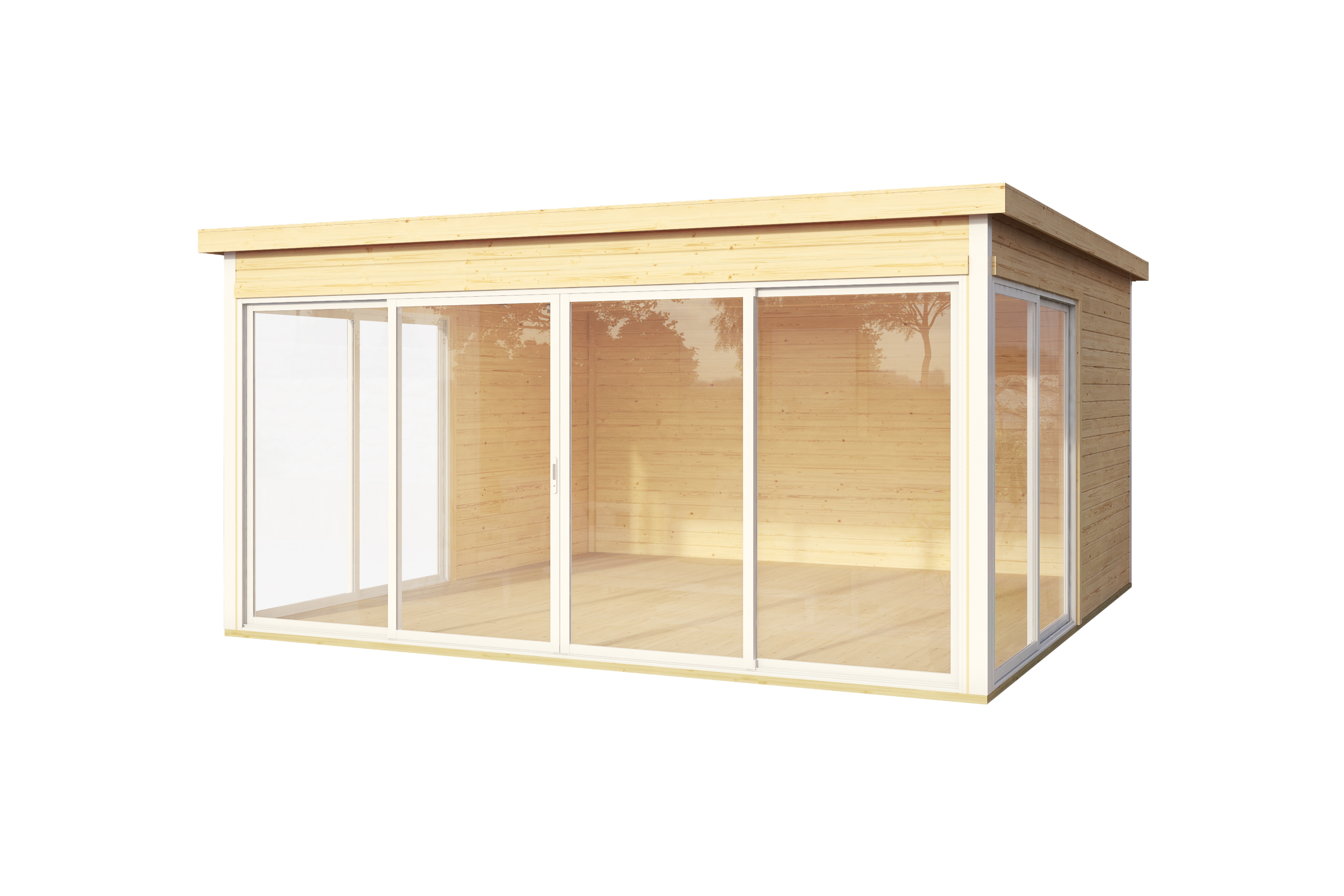Sie sind auf der Suche nach einem neuen und ganz besonderen Gartenhaus? Dann haben Sie es jetzt gefunden! Das Lasita Maja Premium Gartenhaus DOMEO 5 mit den Maßen 418 x 418 cm sieht nicht nur perfekt aus – es ist auch perfekt! Optisch ist es ein absoluter Hingucker – das wunderschön verglaste Gartenhaus ist quasi ein Wintergarten de Luxe mit 44 mm Wandbohlen mit Doppelnut und -feder aus ausgesuchter nordischer Fichte. Sie können es in unserem Bestellshop farblich endbehandelt bestellen: Zur Auswahl stehen die Farben Carbon Grau, Licht Grau, Tauben Blau und Eiche. Ebenso können Sie es wahlweise mit Aluminium Fenster-/Tür-Rahmen in den Farben Anthrazit oder Arctic Weiss günstig kaufen. Lassen Sie sich vom Wohnhaus und Ihrem Garten inspirieren und entscheiden dann die entsprechenden Farbakzente. Noch dazu können Sie das DOMEO 5 von Lasita Maja optional mit einem Anbaudach ordern! Das Schleppdach rundet das hübsche DOMEO 5 noch einmal ab und bietet noch einiges mehr an überdachten Platz – selbstverständlich kann es wahlweise links oder rechts montiert werden.