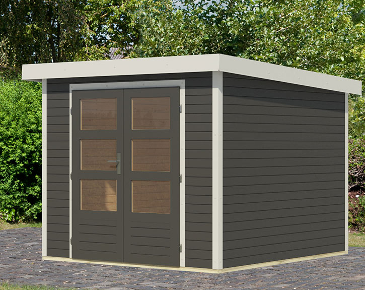 Mit diesem Hybrid-Gartenhaus bietet Karibu Dir ein echtes Premium-Produkt, welches die Vorteile von Holz und Metall zu einem Holz-Gartenhaus mit minimalem Wartungsaufwand vereint. Diese Mischung aus warmem Holz und robustem Metall sorgt für erhöhte Langlebigkeit, zusätzliche Stabilität und verstärkten Schutz vor den Witterungseinflüssen. Dieses Gartenhaus ist bereits von außen werksseitig mit einer Lasur in der Farbe Terragrau gestrichen. In Kombination mit den Metallteilen in der Farbe Weiß und dem anthrazitfarbenen Dach aus Trapezblech erhältst Du ein extravagantes, modernes Gartenhaus. Allgemein
