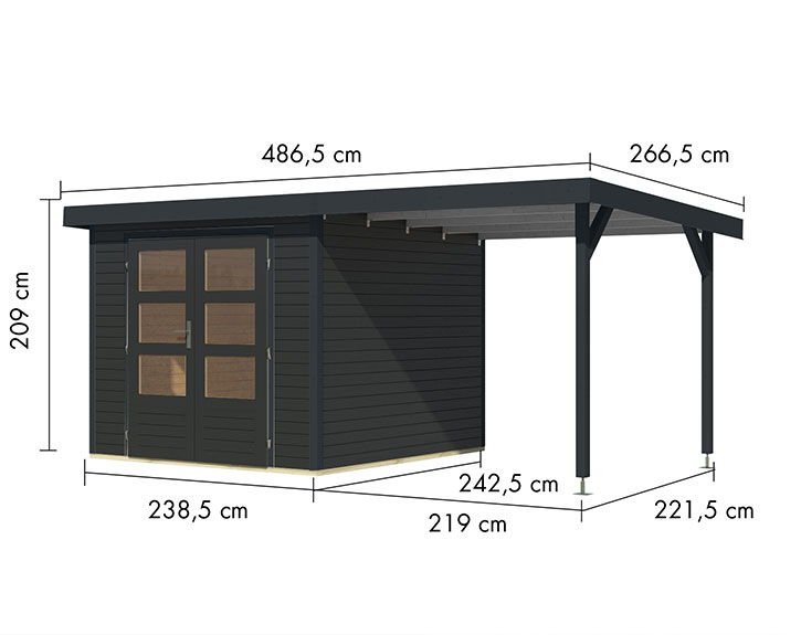 1 x Karibu Hybrid-Gartenhaus Jupiter 3,5 C + 2,4m Anbaudach - 19mm Elementhaus - Geräteschuppen - Pultdach - anthrazit/anthrazit