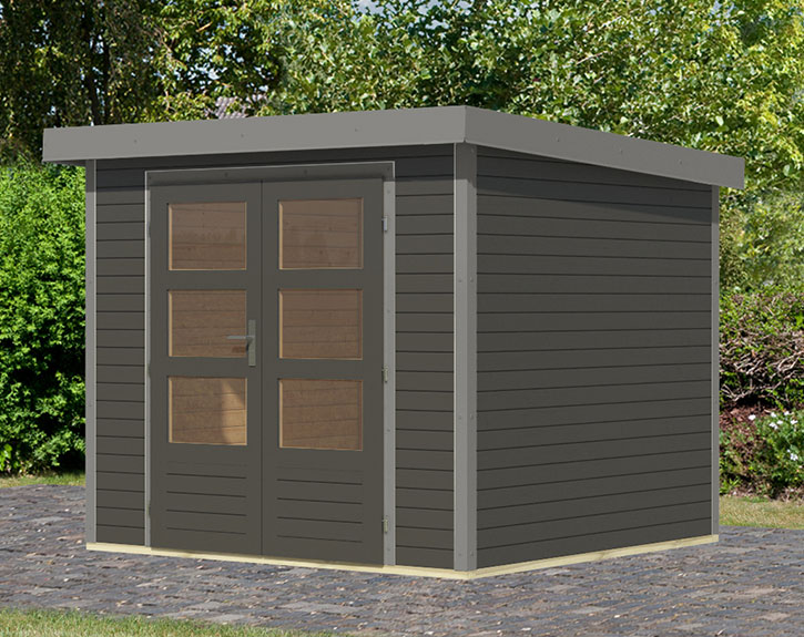 Mit diesem Hybrid-Gartenhaus bietet Karibu Dir ein echtes Premium-Produkt, welches die Vorteile von Holz und Metall zu einem Holz-Gartenhaus mit minimalem Wartungsaufwand vereint. Diese Mischung aus warmem Holz und robustem Metall sorgt für erhöhte Langlebigkeit, zusätzliche Stabilität und verstärkten Schutz vor den Witterungseinflüssen. Dieses Gartenhaus ist bereits von außen werksseitig mit einer Lasur in der Farbe Terragrau gestrichen. In Kombination mit den Metallteilen in der Farbe Graualuminium und dem anthrazitfarbenen Dach aus Trapezblech.erhältst Du ein extravagantes, modernes Gartenhaus. Allgemein