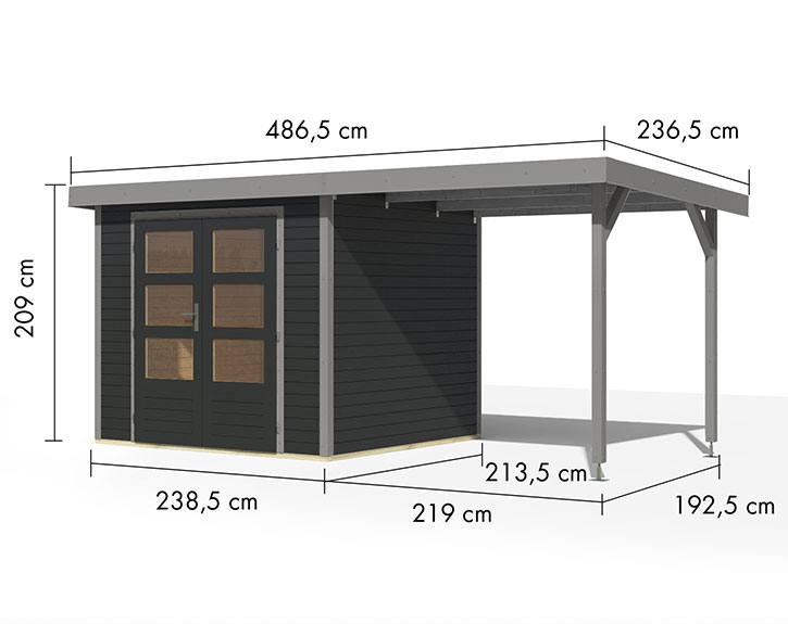 Karibu Hybrid-Gartenhaus Jupiter 3 C + 2,4m Anbaudach - 19mm Elementhaus - Geräteschuppen - Pultdach - anthrazit/grau