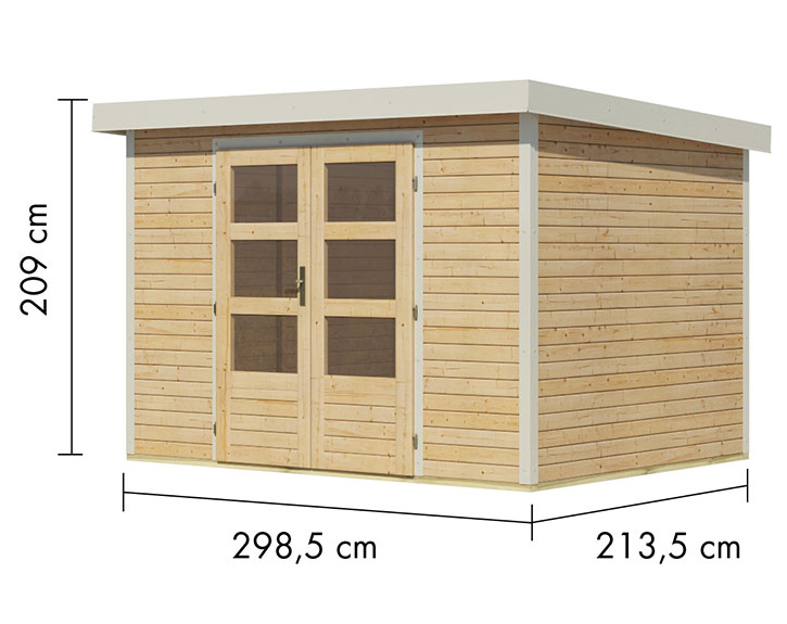 Mit diesem Hybrid-Gartenhaus bietet Karibu Dir ein echtes Premium-Produkt, welches die Vorteile von Holz und Metall zu einem Holz-Gartenhaus mit minimalem Wartungsaufwand vereint. Diese Mischung aus warmem Holz und robustem Metall sorgt für erhöhte Langlebigkeit, zusätzliche Stabilität und verstärkten Schutz vor den Witterungseinflüssen. Dieses Gartenhaus Jupiter 4 A besteht aus naturbelassener Fichte in Kombination mit Metallteilen in der Farbe Weiß und einem anthrazifarbenen Dach aus Trapezblech. Allgemein