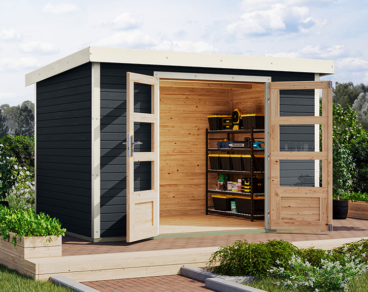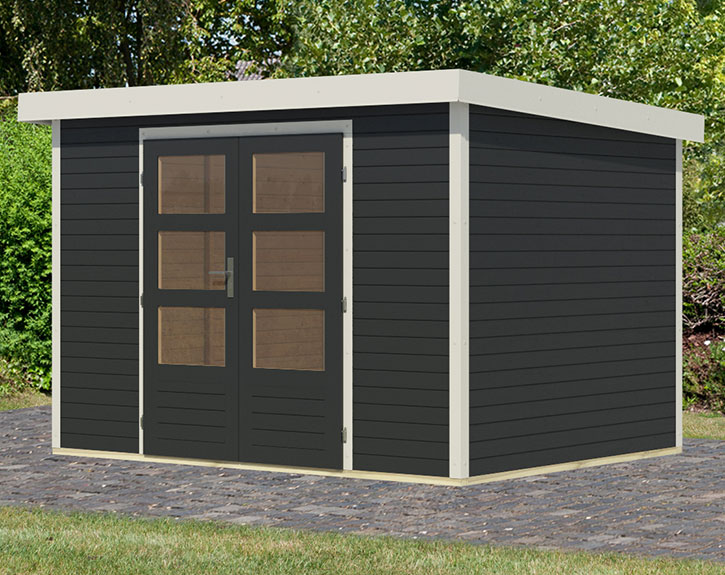 Karibu Hybrid-Gartenhaus Jupiter 4 C - 19mm Elementhaus - Geräteschuppen - Pultdach - anthrazit/weiss
