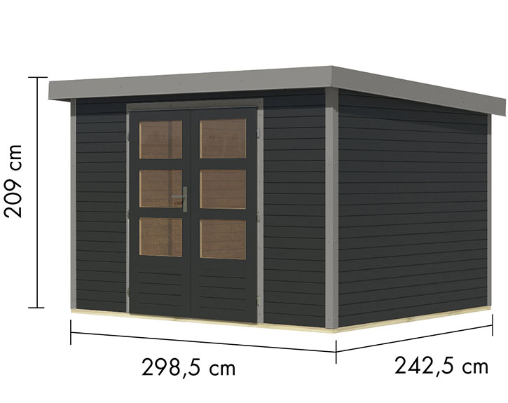 Karibu Hybrid-Gartenhaus Jupiter 5 C - 19mm Elementhaus - Geräteschuppen - Pultdach - anthrazit/grau