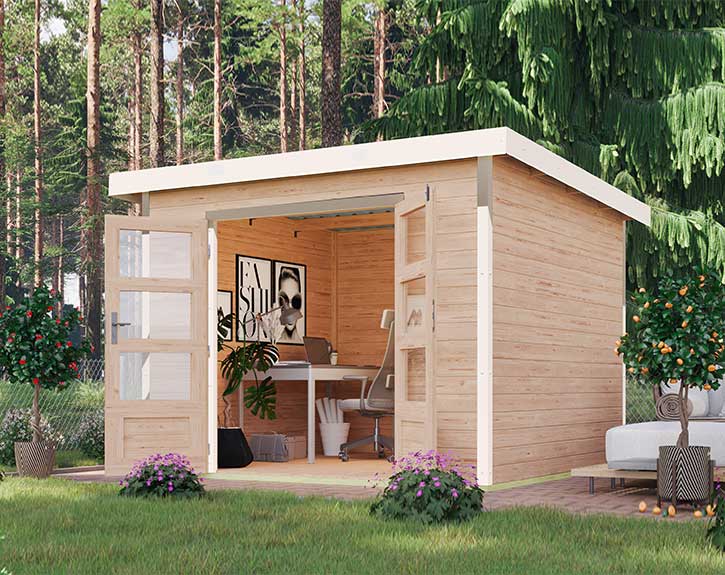 Du möchtest ein neues Gartenhaus und liebst den modernen Mix aus Holz und Metall? Dann empfehlen wir Dir das Hybrid Gartenhaus Pluto von Karibu. Dieses Gartenhaus vereint die Vorteile der Materialien Holz und Metall auf perfekte Art. Die Wände sind aus naturbelassenem, nordischem Fichtenholz, welches Wärme und Behaglichkeit ausstrahlt. Die Dach-, Eck- und Seitenblenden sind aus pflegeleichtem Metall in der Farbe Weiß, welches dem Gartenhaus eine moderne Optik verleiht. Durch die hochwertigen Metallteile verringerst Du den Pflegeaufwand des Gartenhauses enorm. Allgemein