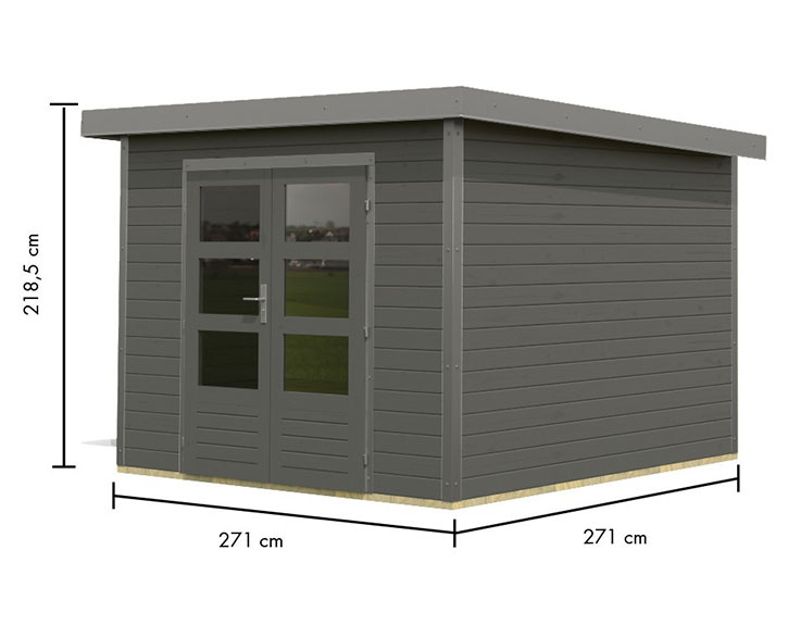 Du möchtest ein neues Gartenhaus und liebst den modernen Mix aus Holz und Metall? Dann empfehlen wir Dir das Hybrid Gartenhaus Pluto von Karibu. Dieses Gartenhaus vereint die Vorteile der Materialien Holz und Metall auf perfekte Art. Die Wände sind bereits werksseitig von außen mit einer Lasur in der Farbe Terragrau gestrichen. Die Dach-, Eck- und Seitenblenden sind aus pflegeleichtem Metall in der Farbe Graualuminium, welches dem Gartenhaus eine moderne Optik verleiht. Durch die hochwertigen Metallteile verringerst Du den Pflegeaufwand des Gartenhauses enorm. Hybrid-Gartenhaus Pluto - modern, durchdacht und wartungsarm Die Wände des Gartenhauses Pluto bestehen aus 28 mm starker nordischer Fichte, die Stahlecken sowie die Dachleisten sind aus verzinktem Stahlblech. Das wartungsfreie Dach besteht aus verzinktem Trapezblech. Die moderne Doppelflügeltür mit großzügigem Lichtausschnitt sorgt für gute Lichtverhältnisse im Innenbereich. Für optimale Stabilität ist diese Tür in einen Metallrahmen eingefasst und zum Schutz Deines Eigentums mit einem hochwertigen Zylinderschloss ausgestattet. Das anthrazitfarbene Dach besteht aus verzinktem Trapezblech. Dieses Material hat den Vorteil, dass es hohen Belastungen standhält, dauerhaft witterungsbeständig ist und eine sehr lange Lebensdauer hat. Die Eckblenden aus hochwertigem Stahl schützen das Holz und reduzieren gleichzeitig die Wartungsarbeiten dieses Gartenhauses. Allgemein