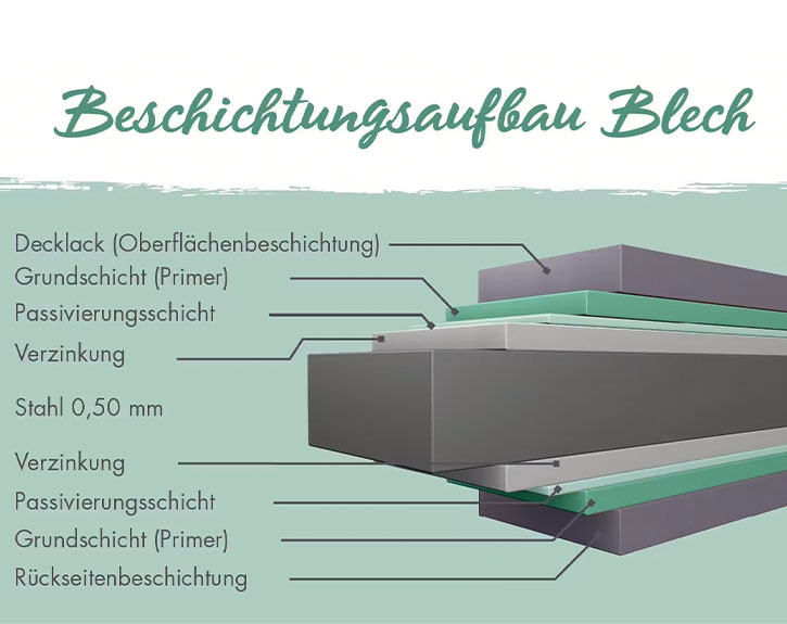pulverbeschichtet, nur außen farbbehandelt, farbbehandelt