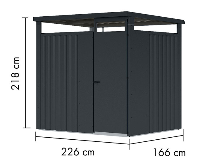 Du suchst ein Gerätehaus für all Deine Gartengeräte? Es soll robust sein, eine moderne Optik haben und keinerlei Pflege benötigen? Dann bist Du hier genau richtig. Das Metallhaus Østen ist stabil konstruiert, bietet Dir wertvollen Stauraum im modernen Design und ist absolut pflegefrei. Es ist rundum aus witterungsbeständigen Metall und wird inklusive umlaufendem Oberlicht und hochwertigem Regenablaufsystem geliefert. Das Metall hat die Farbe Graualuminium und um das Äußere perfekt abzurunden, sind die Schrauben in der gleichen Stahlfarbe. Karibu Metall-Gartenhaus Østen 1,5 - Elementhaus - Geräteschuppen - Pultdach - bestehend aus: