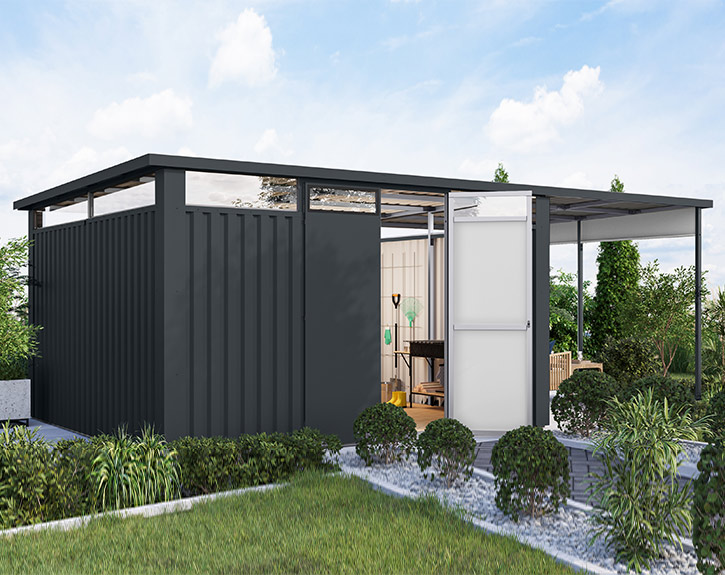 Karibu Metall-Gartenhaus Østen 4 + 2,25 Anbaudach - Elementhaus - Geräteschuppen - Pultdach - anthrazit