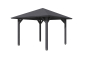 Die Firstkappe aus schwarz lackiertem Stahl mit goldener Messingkugel verschönert Ihren SKAN HOLZ 4-Eck Pavillon Cannes nicht nur, sondern dichtet das Dach auch nach oben gegen eindringende Feuchtigkeit ab. Der Durchmesser der Messingkugel beträgt ca. 8 cm.