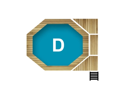 Poolgrundkörper inklusive Bodenschutzflies, Spezial-Folie, kdi-Holzdeck, Edelstahlleiter und Holzleiter, Ausstattung wie Variante C + Sonnenterrasse C inkl. Geländer, Seitenwände und Terrassendeck kdi