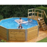 Die massiven 45mm Blockbohlen unserer Pools sind kesseldruckimprägniert und somit länger vor Witterung geschützt. Ein teilversenkter Einbau ist möglich.