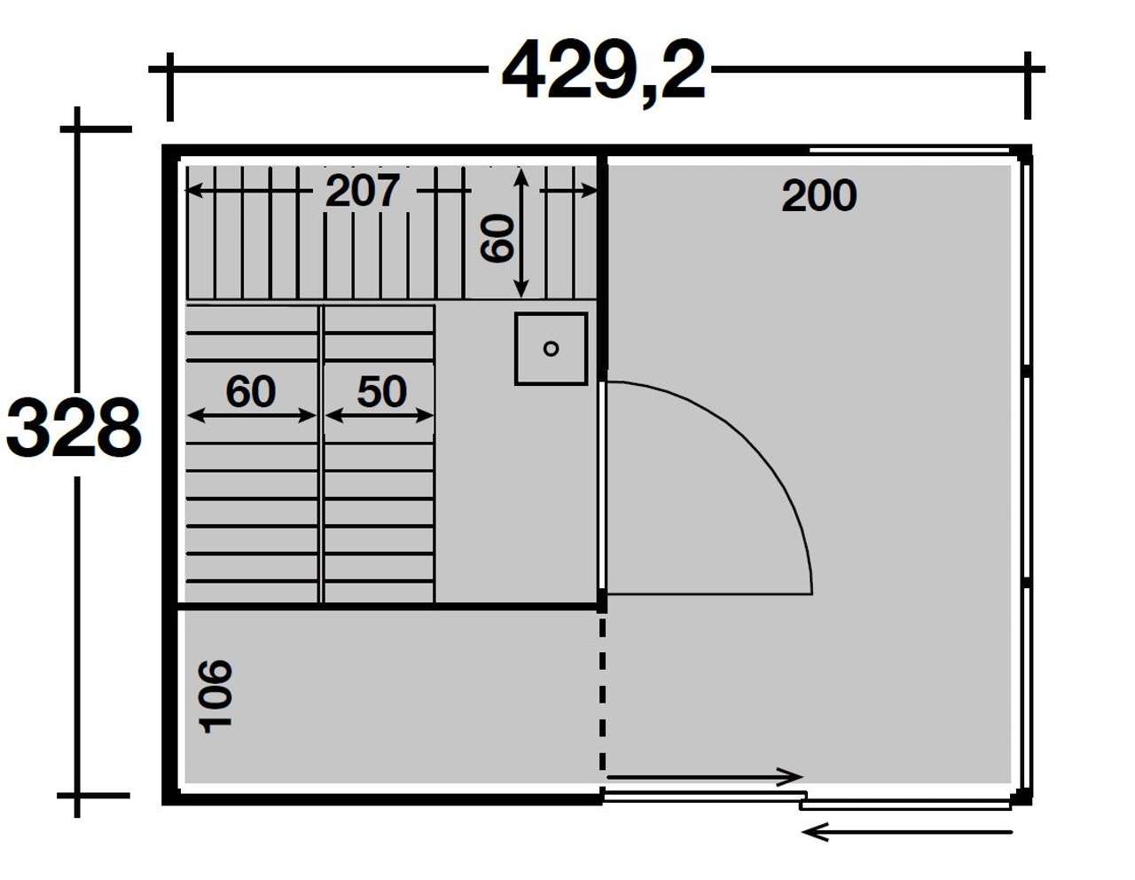 - Sockelmaß 429 x 328 cm